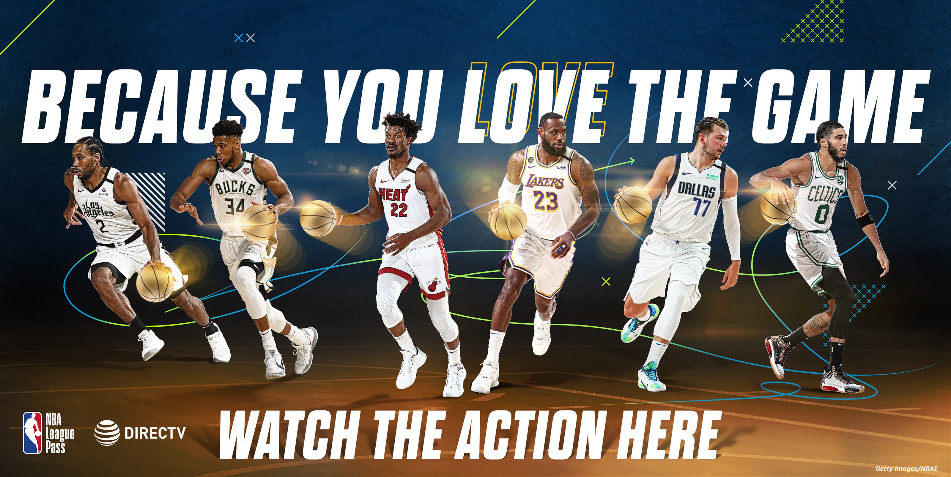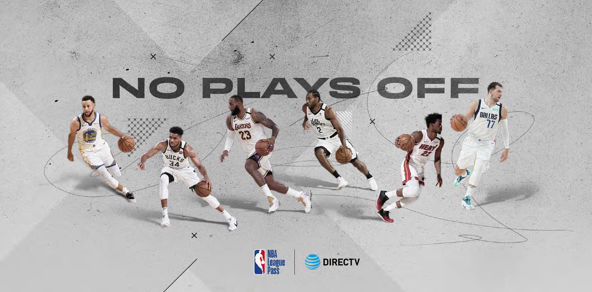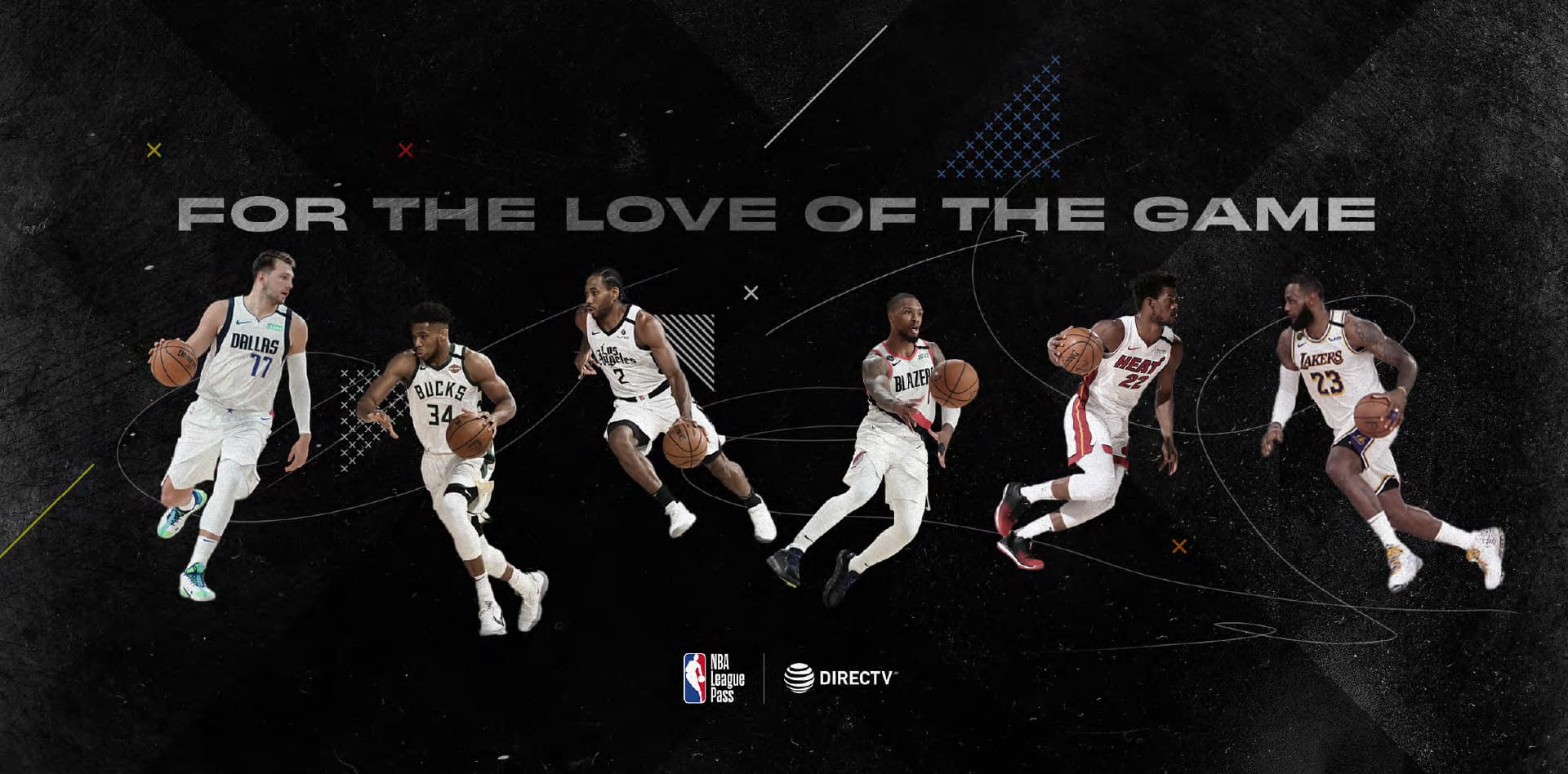 For NBA League Pass: Crafted dynamic, action-packed key art featuring top NBA athletes (Giannis, Butler, LeBron, Luka, Tatum) in mid-play. Designed a modular layout system with bold court-line graphics, flexible for OOH placements, digital displays, printed direct mail and social campaigns.