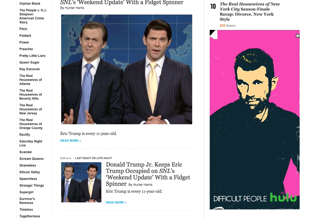 Drive awareness and viewership for Hulu’s irreverent comedy Difficult People through bold, attention-grabbing digital marketing assets, including rich media takeovers and display campaigns.
