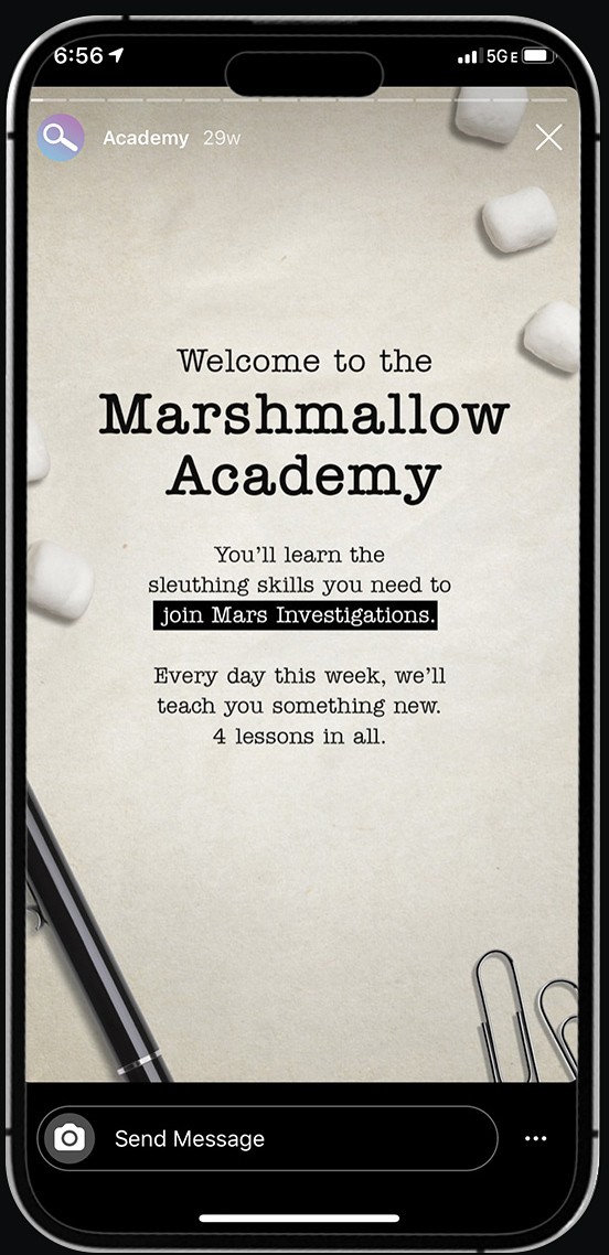 Concept and lead the creation of “Marshmallow Academy.” An interactive Instagram-based game inviting fans to become rookie investigators.